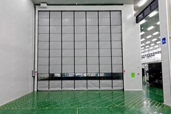 煙臺捷曼門業有限公司,高強度環保聚脂纖維PVC簾布,雙面聚氯乙烯涂層,多種色彩選擇(黃色、藍色、灰色等)防腐,防紫外線,防鹽,厚度為0.8MM耐低溫-30C°。